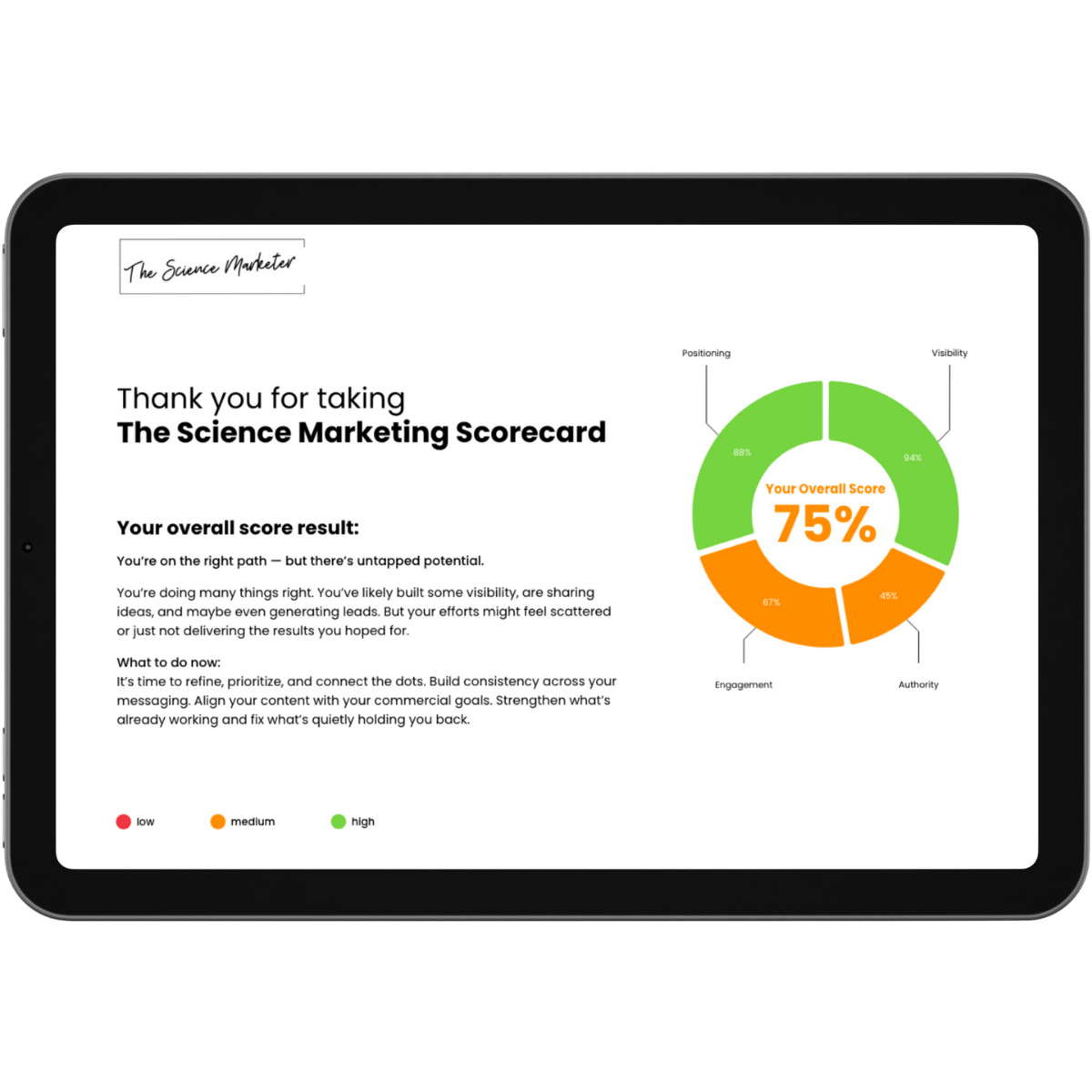Your marketing will be scored based on the following 4 pillars: